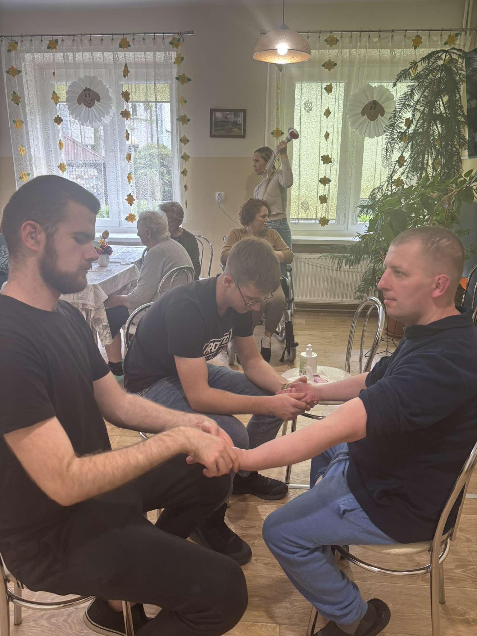 W ramach wizyty słuchacze kierunku Technik masażysta wykonali relaksacyjne masaże dłoni i karku, sprawiając mieszkańcom chwilę przyjemności i odprężenia. Spotkanie przebiegło w serdecznej i ciepłej atmosferze, pełnej uśmiechu i wzruszeń.