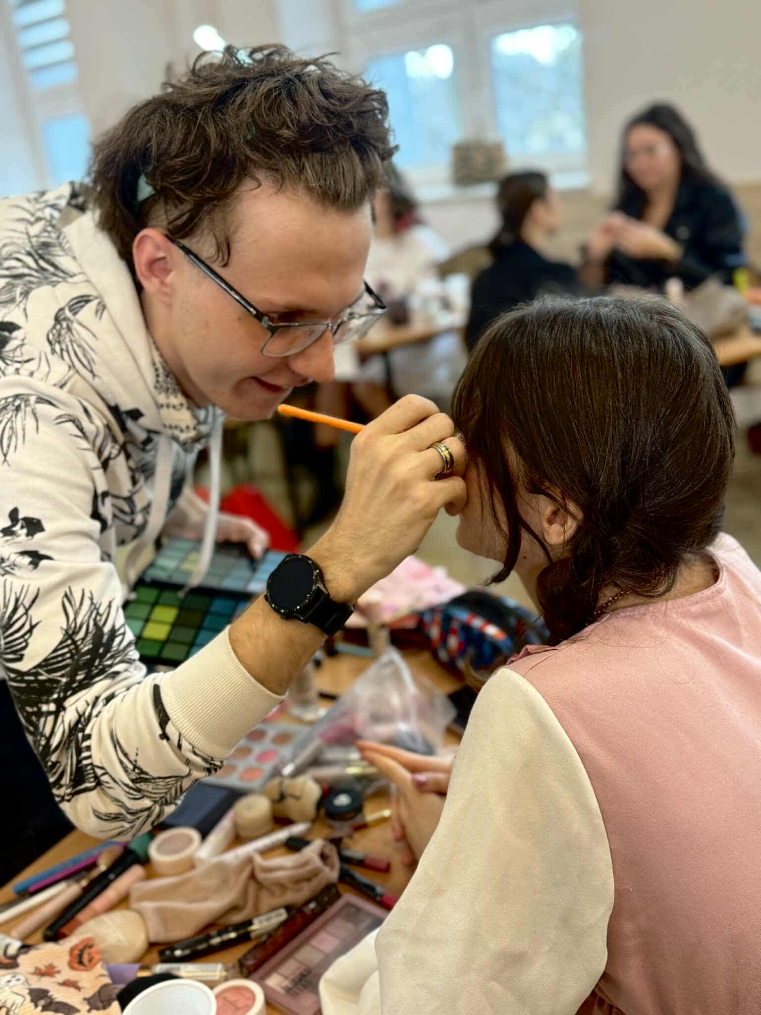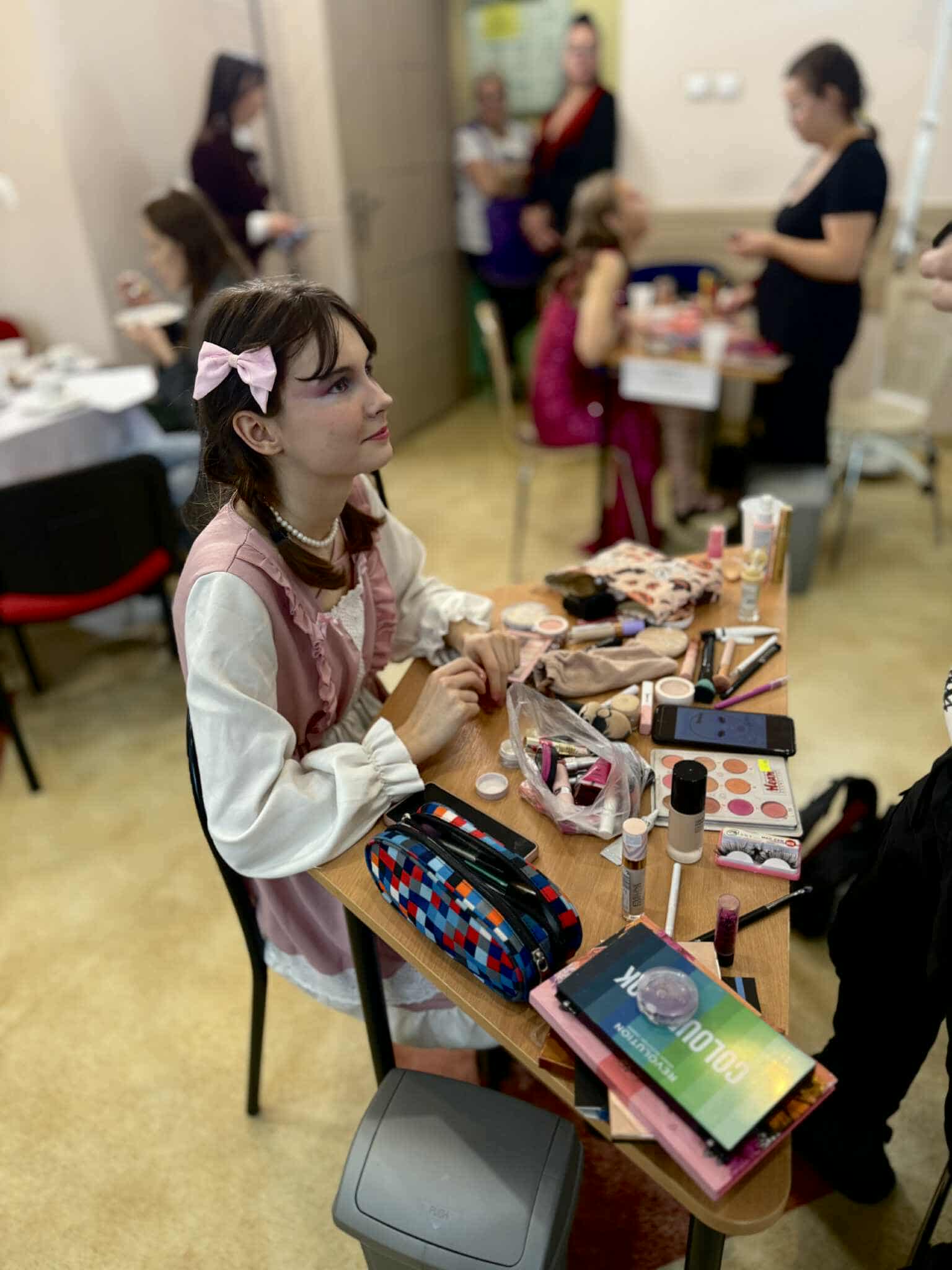 Uczestnicy poznają zasady harmonii kolorów, kompozycji i technik makijażu.